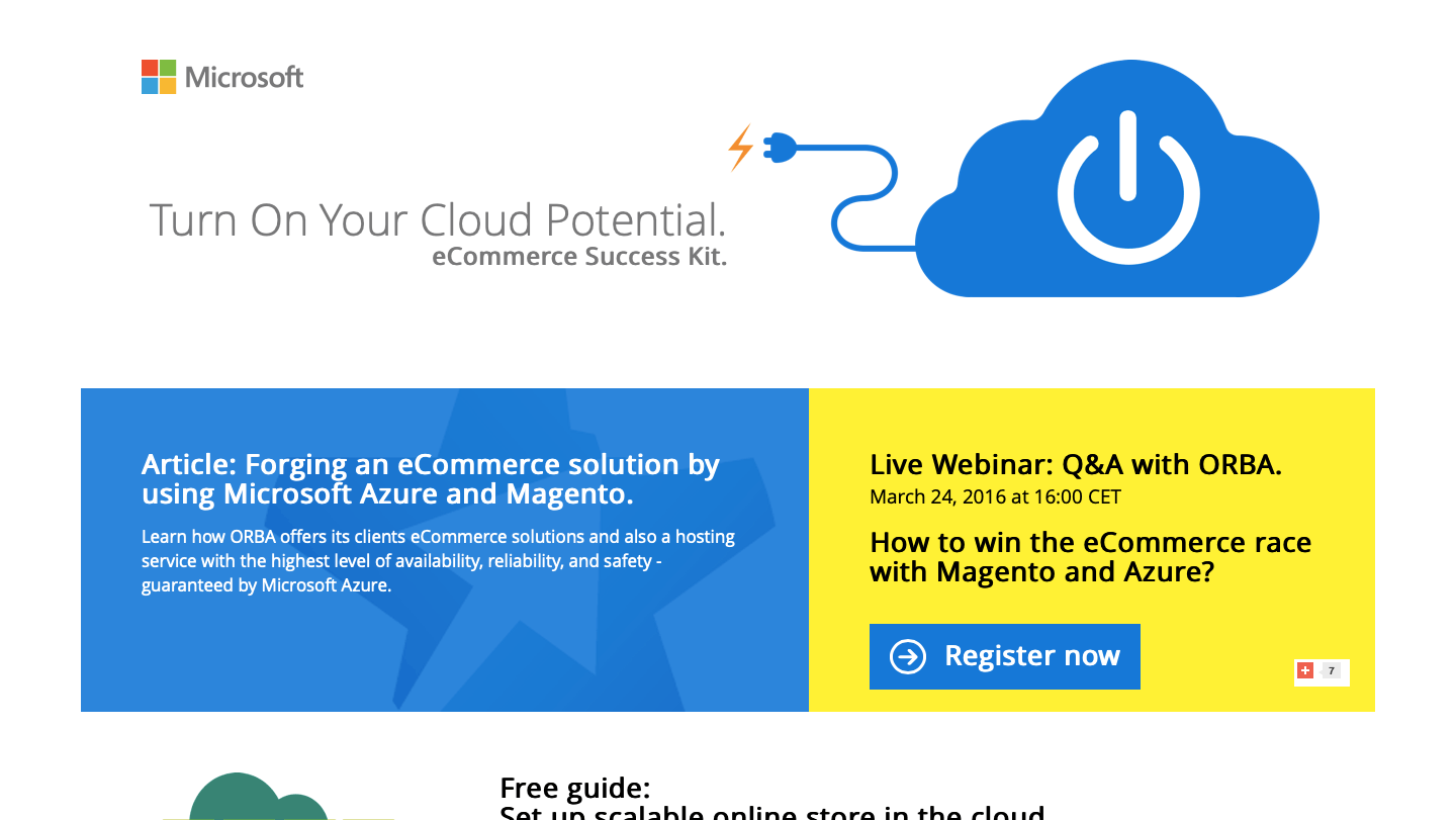 For Microsoft we created an online conversion page combining the promotion of Azure for eCommerce and webinars with a market influcener.